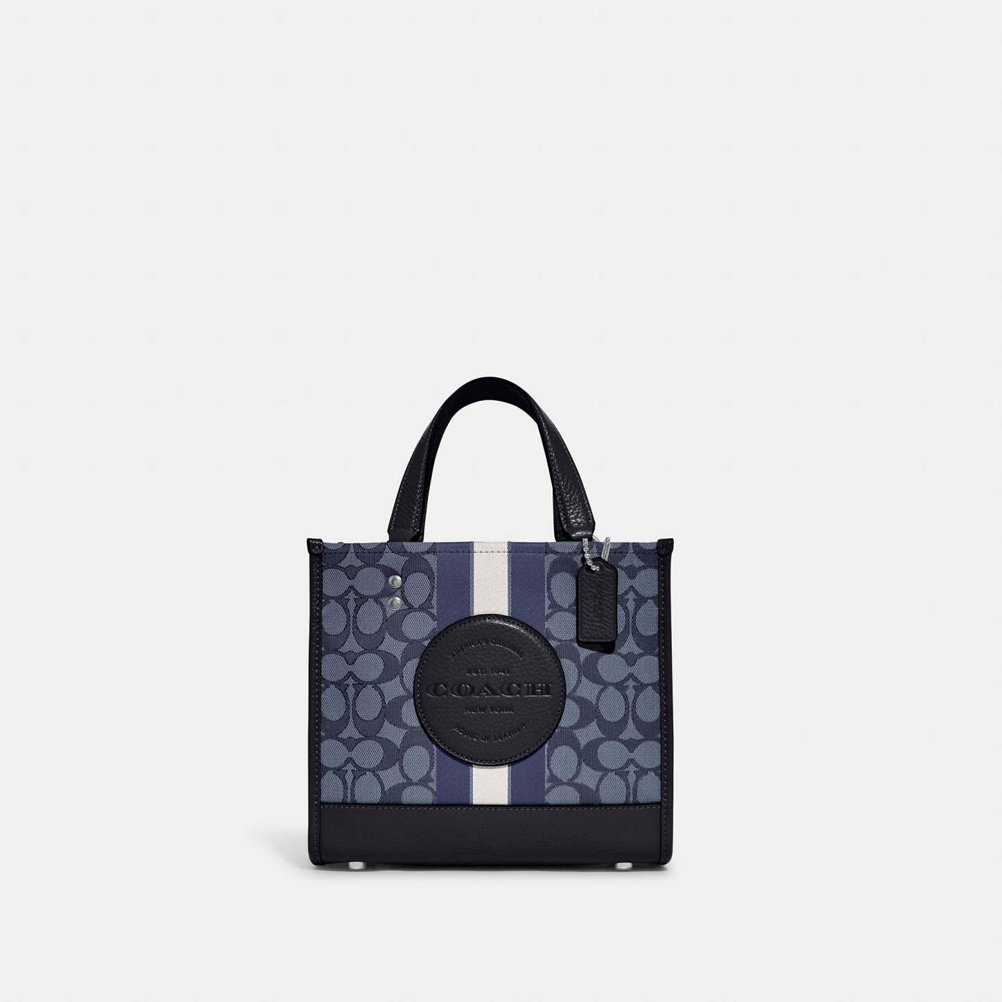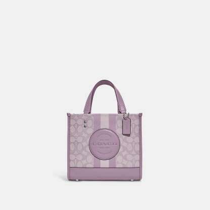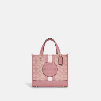Signature jacquard and refined pebble leather Inside zip and multifunction pockets Snap closure fabric lining Handles with 4 1/4 drop Detachable strap with 22 1/2 drop for shoulder or crossbody wear Four protective feet at base 8 3/4 (L) x 7 3/4 (H) x 4 1/4 (W) This piece is crafted of our Signature jacquard made from a blend of organic cotton and recycled polyester Style No. C8417 | Outlet Dempsey Tote 22 In Signature Jacquard With Stripe And Patch - Red